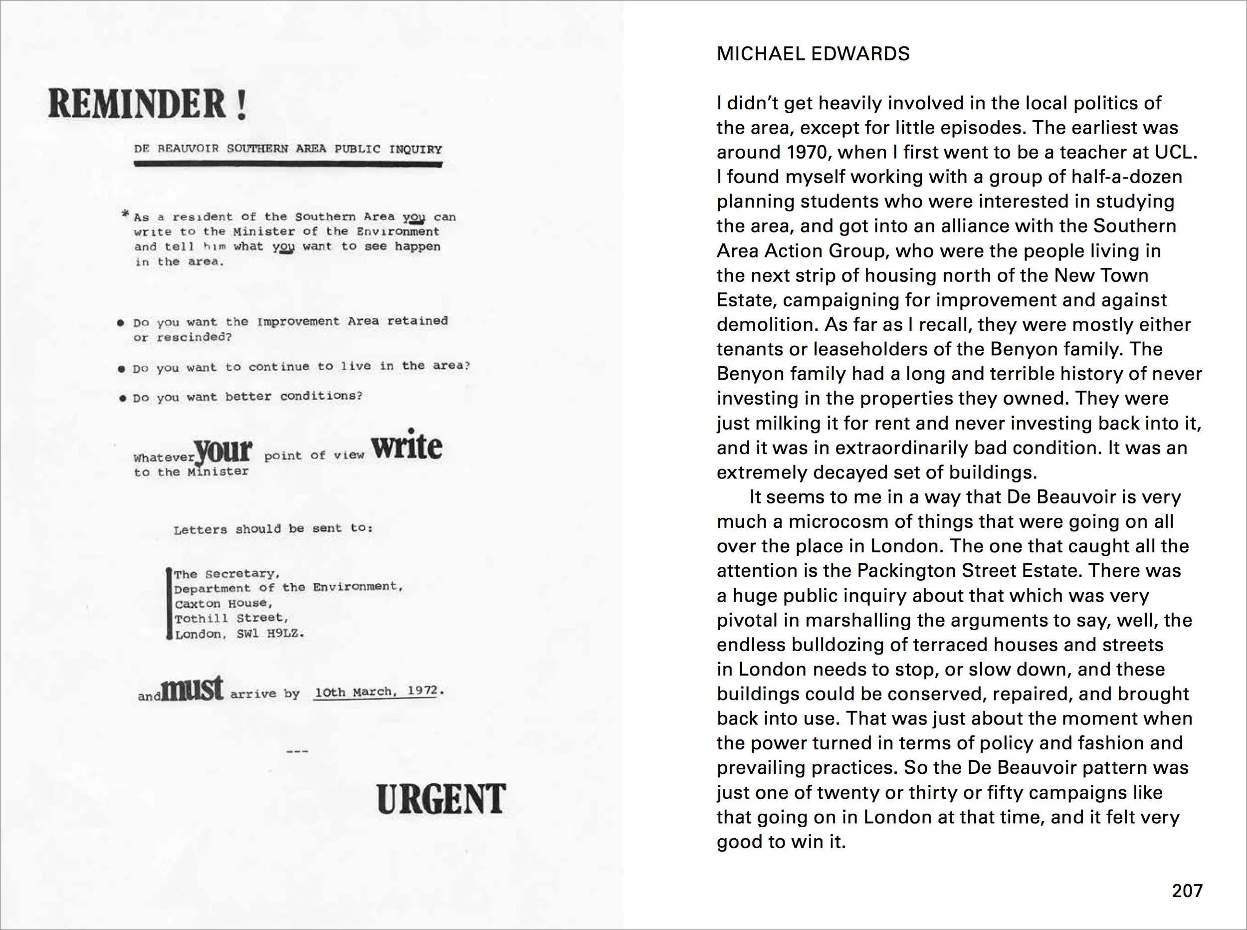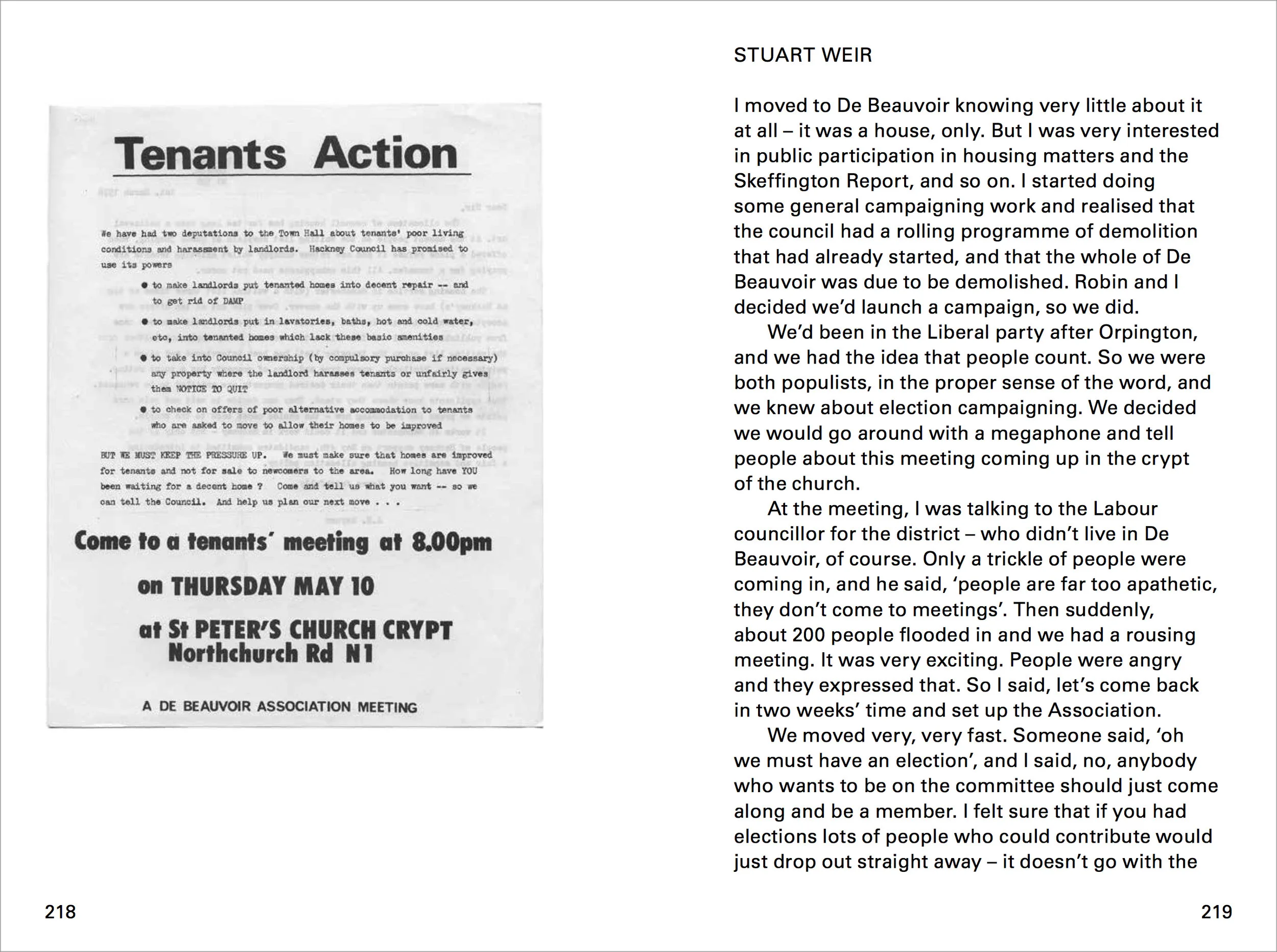 Listen to the publication launch event below, an 'in conversation' preceded by a brief introduction to Own De Beauvoir! and followed by audience questions. The discussion features Stuart Weir, one of the most prominent figures in De Beauvoir collection action in the late 1960s and early 1970s. After his campaigning in De Beauvoir, he became a local councillor, before returning to work for non-state political organisations, including Child Poverty Action Group and Shelter. In the late 1980s he became editor of the New Statesman magazine, before founding Democratic Audit at the University of Essex. He now lives in Cambridge and continues to write for Opendemocracy.net.